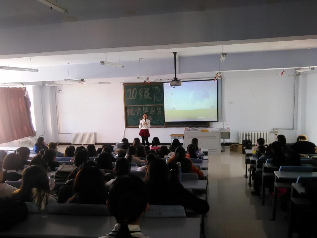 为帮助大学生科学、合理地规划职业生涯,树立正确的择业观念。3月20日下午,英语系邀请10级优秀毕业生代玉同学为13级、14级学生讲座。