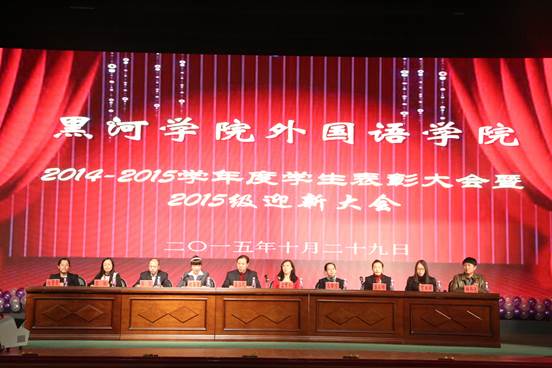 2015年10月29日晚,全讯官网在明德楼礼堂隆重举行2014—2015学年度学生表彰大会暨2015级迎新大会。全讯官网领导班子和全体师生以及通识学院的部分新生参加了本次大会。