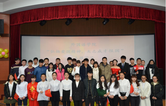 晚会结束全场演职人员与领导和校级学生会干部合影留念,“弘扬爱国精神,矢志成才报国”主题团活在一片欢声笑语中落下帷幕。