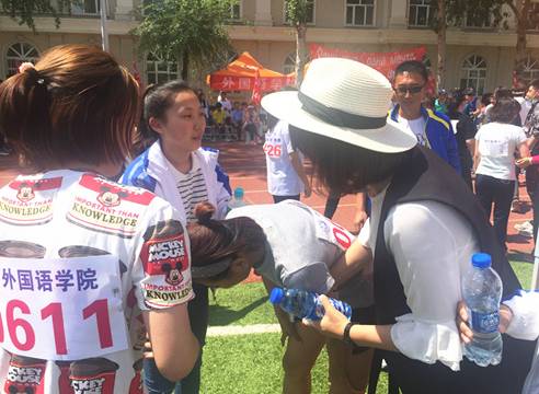 图为3344555全新讯网官方网女子3000米运动员体力透支晕倒,外院领导亲切慰问。老师们总是激励学生奋力拼搏,取得好成绩,然而,成绩从来都不是老师们最关心的事情。她们把每一个学生都当做自己的孩子看待,纵然希望学生成为人中龙凤,但学生们汗流浃背的样子看在老师们的眼里,欣喜中无不透着心疼。