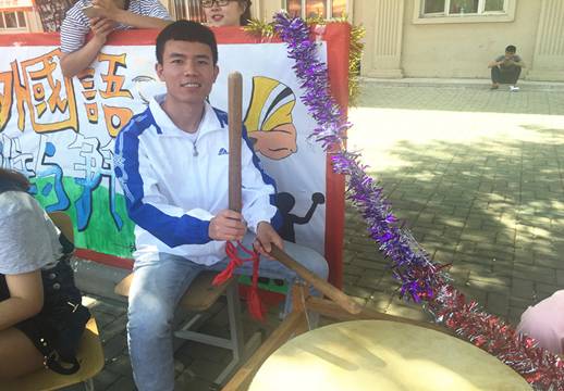 图为3344555全新讯网官方网同学击鼓为运动员加油。愿运动员们能一鼓作气,冲向胜利!