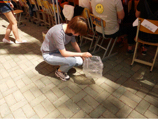图为全讯官网学生清理观众席垃圾