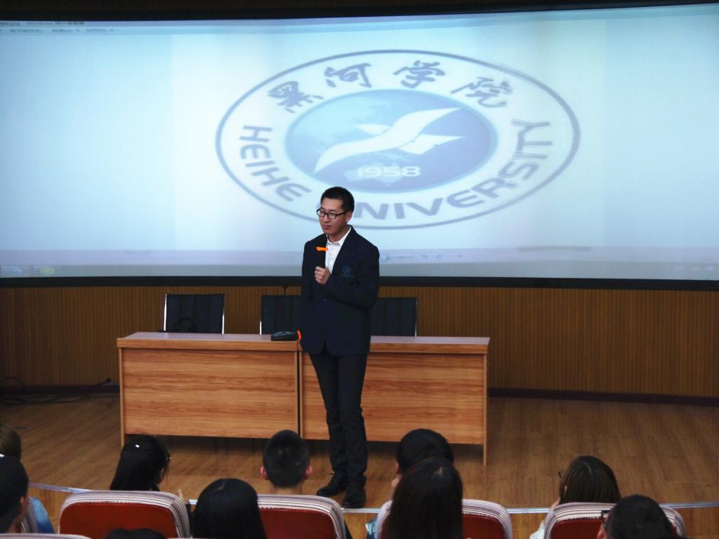 2016年6月17日中午12点,在俄语楼小剧场举行“互联网思维”讲座,参与本次讲座的有哈尔滨工业大学TED客座讲师、哈尔滨沐泽澌教育咨询公司总经理Tiger王朝亮先生、3344555全新讯网官方网学工办主任潘云辉老师及2014、2015级学生。
