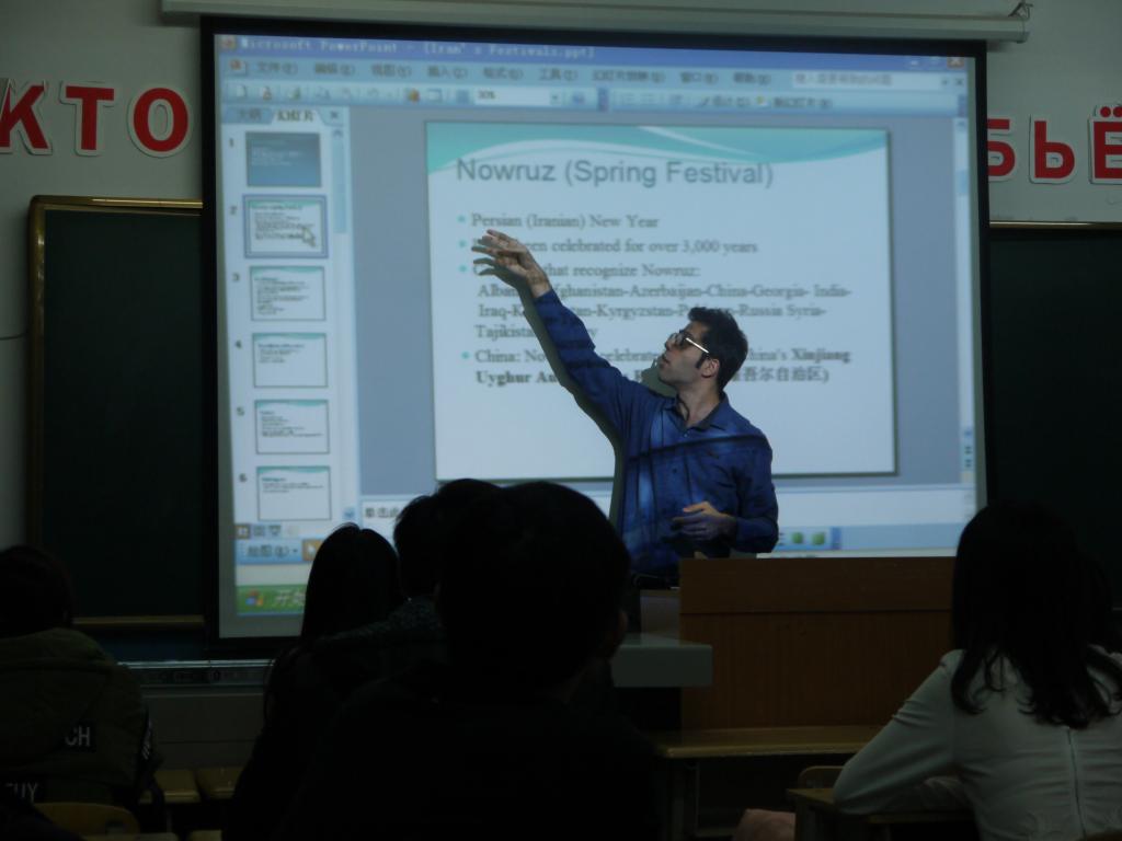 授课现场Mathew教授不仅语言娴熟,条理清晰,而且幽默风趣。他用浅显易懂的语言给同学们讲解理论知识,同时与同学们热情得讨论着异国的饮食、运动、电影、名人以及生活方式。同学们也向他积极请教一些关于英语的学习方法,发音技巧,以及一些国内外文化差异。