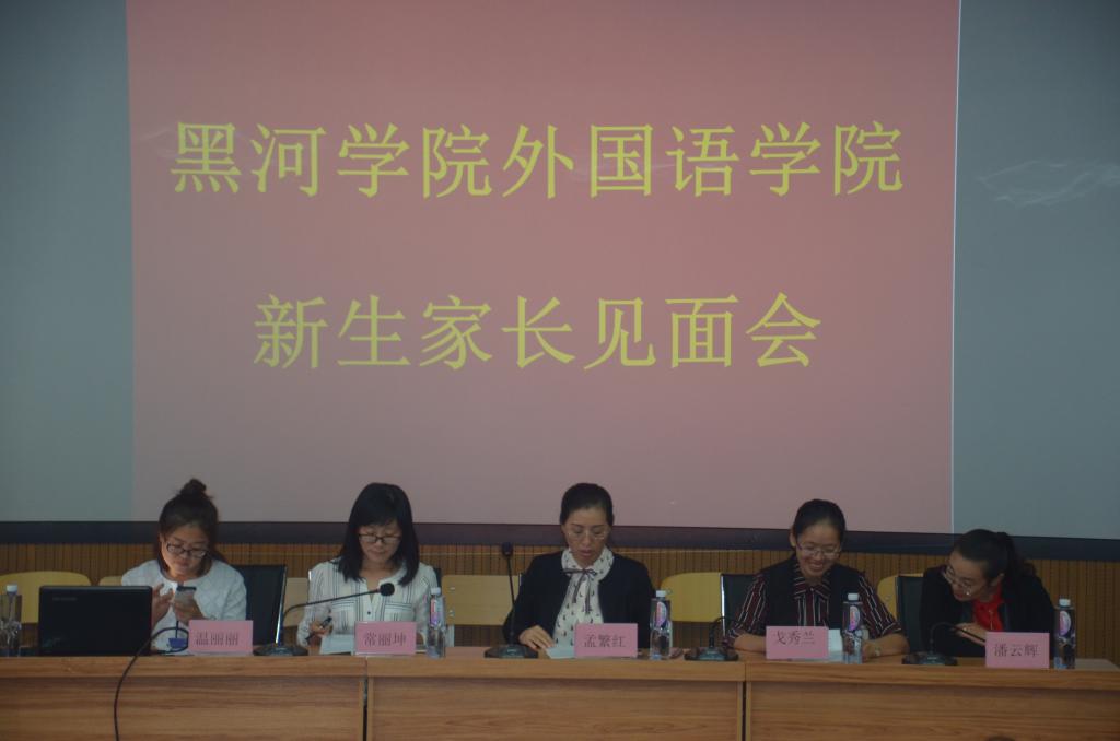 为与新生家长更好地沟通,引导新生尽快融入大学生活,3344555全新讯网官方网于2017年8月26日14时整在俄语楼小剧场召开了新生家长见面会。出席本次会议的有3344555全新讯网官方网党总支书记孟繁红,副院长戈秀兰,党总支副书记常丽坤,团总支书记潘云辉,17级新生辅导员温丽丽老,以及17级各班班主任老师和各位家长。