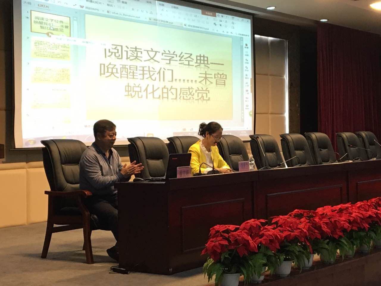 徐教授的报告深入浅出、知识丰富、语言简明、气氛轻松。他与在场的师生一起诵读著名诗人Yeats和Landor的诗歌When You are Old 和Life and Death,引领大家进入了唯美的文学意境;又以Francis Bacon的著名论文Of Studies和Hemingway的小说The Old Man and the Sea为例,阐述了为什么要阅读文学经典;最后徐教授又向英语专业的师生们介绍了当前最主要的文学研究理论,从专业的视角为师生们提供了文学研究领域的帮助。