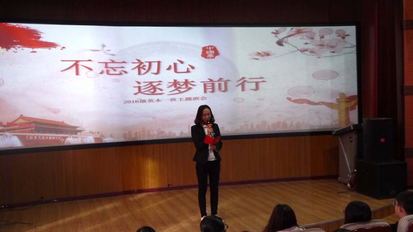 15级英本3班的班会以“喜迎十九大,阳光下成长”为主题,向同学们传达了十九大会议的主要内容。班会通过开展唱国歌、播放十九大开幕式短视频、知识竞答、十九大要点、“说句话给党听”等形式开展。16级英本1班的班会以“不忘初心,逐梦前行”为主题,班会通过同学们之间的畅谈、交流十九大内容、十九大相关知识问答、班级干部解说十九大等形式开展。此次班会形式新颖、主题突出、气氛活跃,使同学们了解了十九大内容、感受了十九大意义、学习了十九大精神。