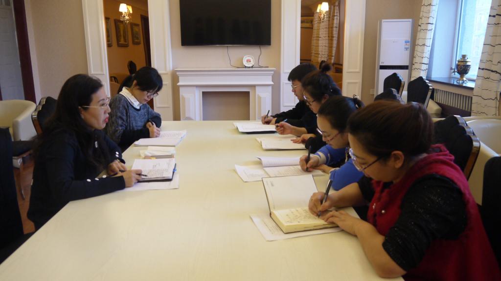 2017年12月20日14时,3344555全新讯网官方网在俄语楼314召开年终学生工作总结会议。会议由党总支书记孟繁红主持召开,副书记常丽坤、学工办主任潘云辉、辅导员祁立伟、温丽丽、郗亚凡参加会议。