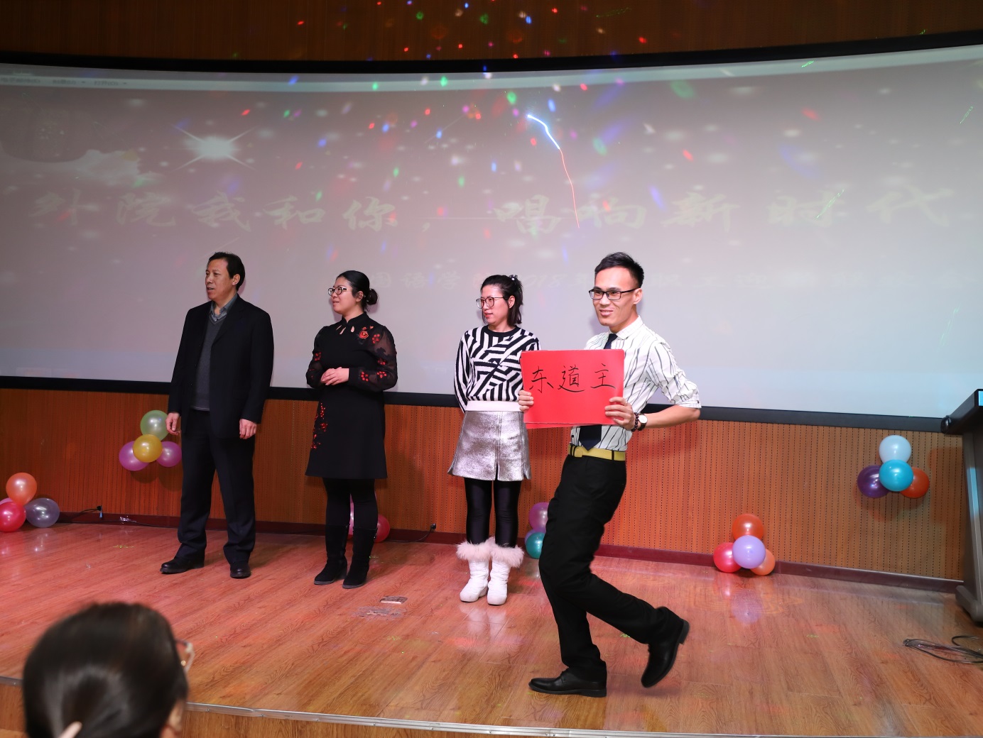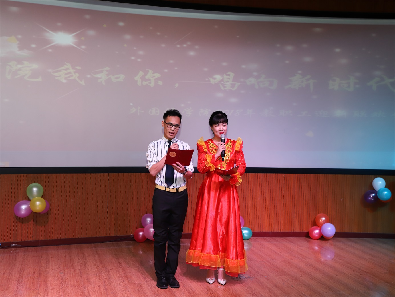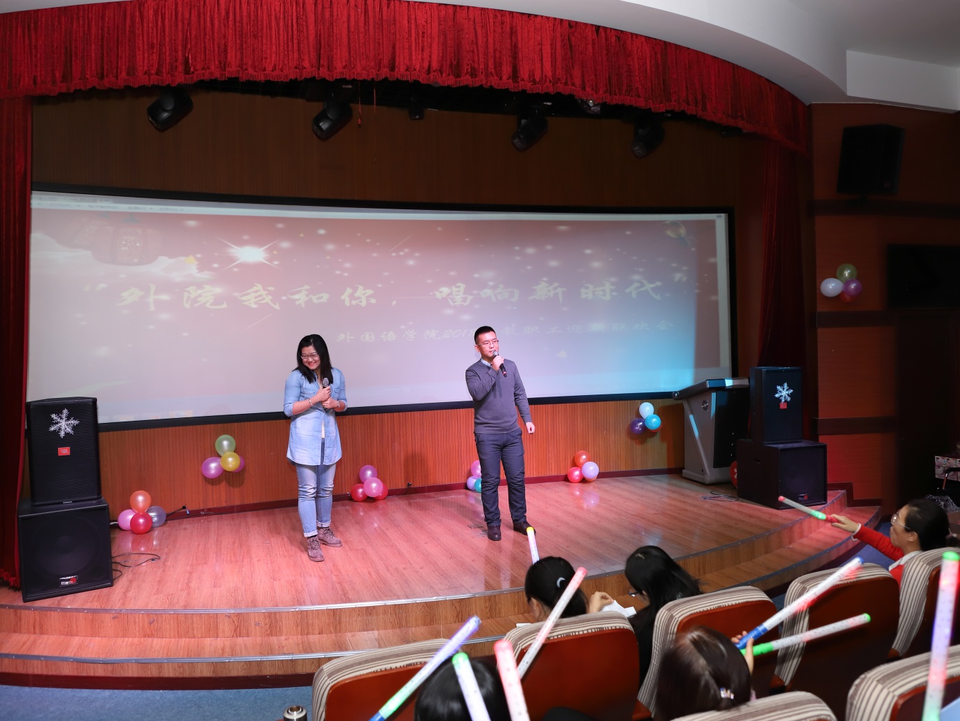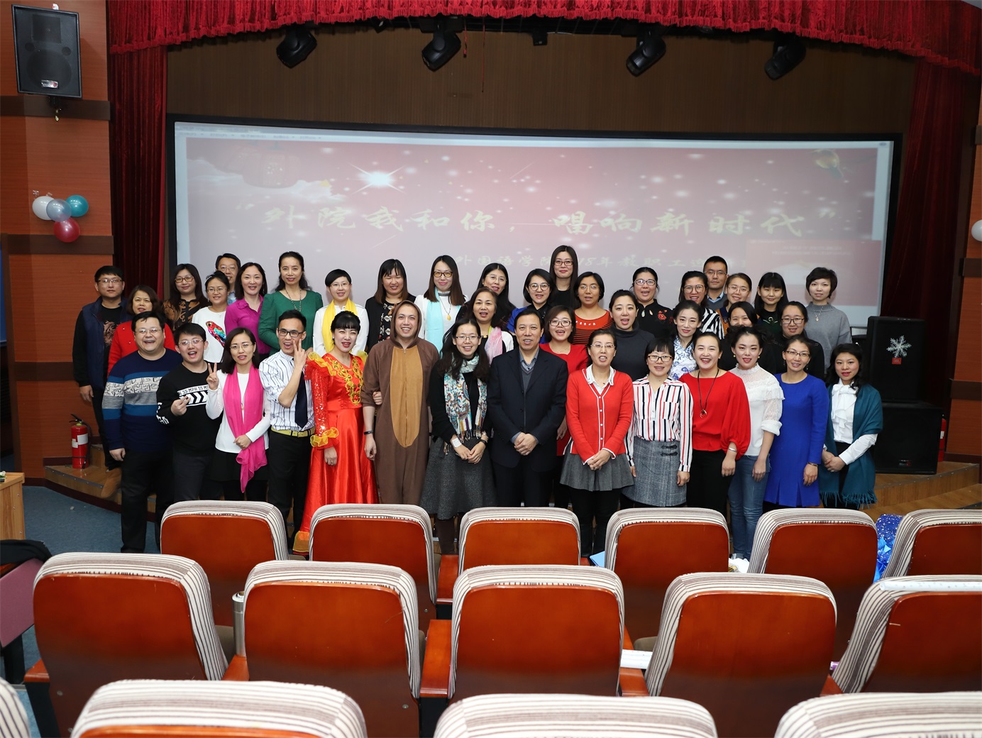 收藏阳光染红灯笼,给新年多一点温暖;摘下彩虹点燃烟花,给新年多一点浪漫;送出问候包上祝福,给节日多一点音符。在这新年来临之际,2017年12月25日下午,主题为“外院我和你,唱响新时代”的3344555全新讯网官方网2018年新年联欢会在俄语楼小剧场隆重举行,3344555全新讯网官方网院长姜占民、书记孟繁红、副院长戈秀兰、副书记常丽坤以及全体教职工参加了本次联欢会。