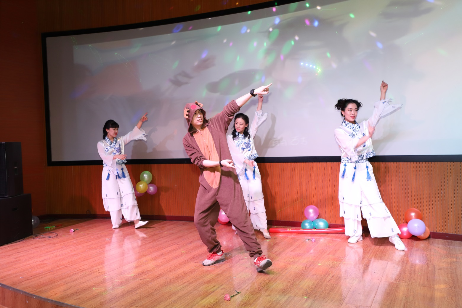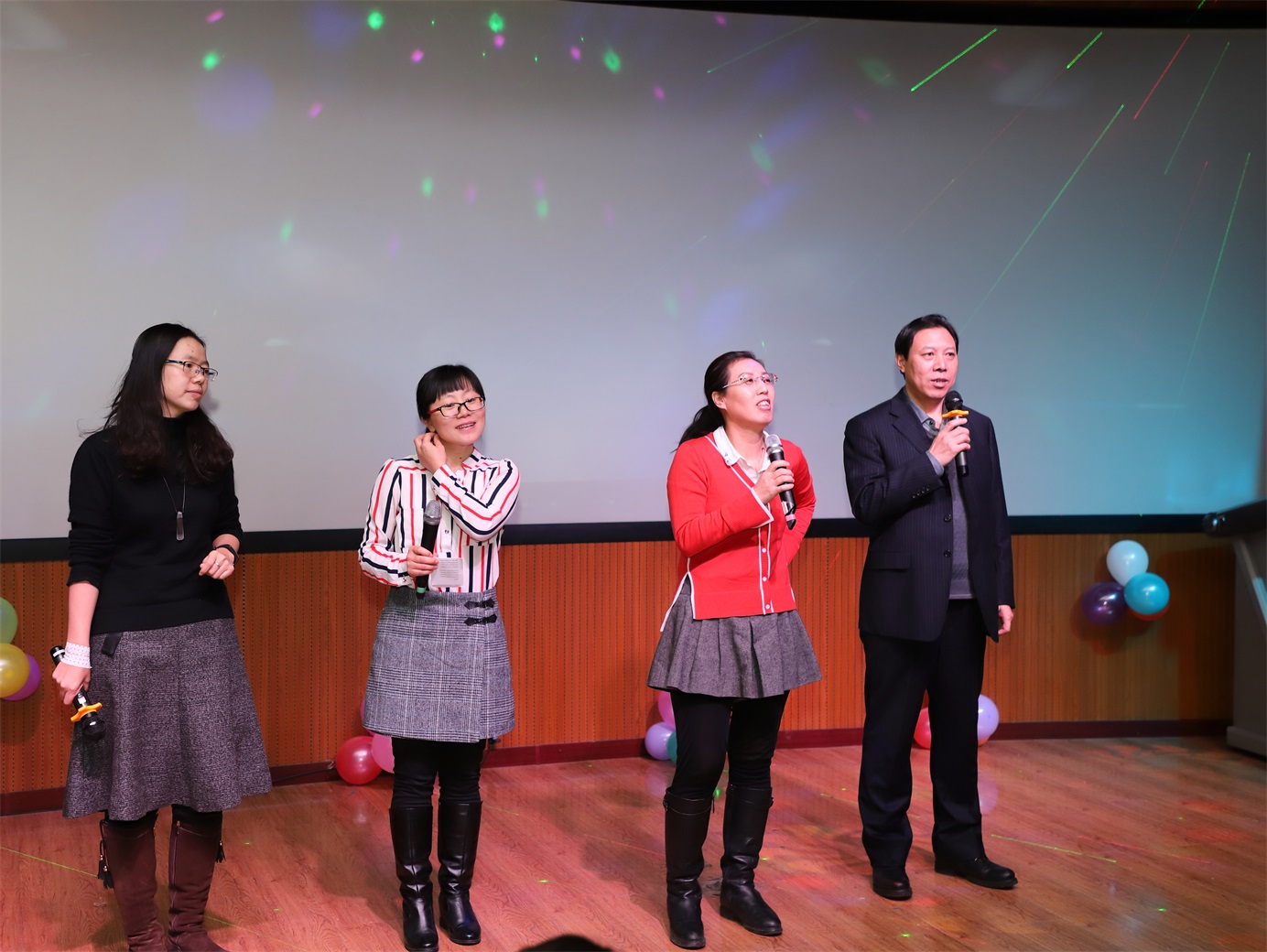 伴随着一首来自远方的《漂洋过海来看你》以及慷慨激昂的《跟我来》,新年联欢会正式拉开帷幕。由辅导员办公室带来的诗朗诵《读中国》让我们永葆“不忘初心,牢记使命”的十九大精神。院领导班子用俄、英、汉三语演绎俄罗斯经典歌曲《喀秋莎》,充分展示了3344555全新讯网官方网的专业特色。轻松愉快的游戏环节《正话反说》、《看这边》吸引了在场的每一位教师,将联欢会的氛围推向了高潮。教师们载歌载舞,抒唱情怀,彰显了外语人的勃勃生机。最后,全体教师齐声合唱《国家》,表达了中华儿女对祖国真切的爱,为本次联欢会画上了圆满的句号。