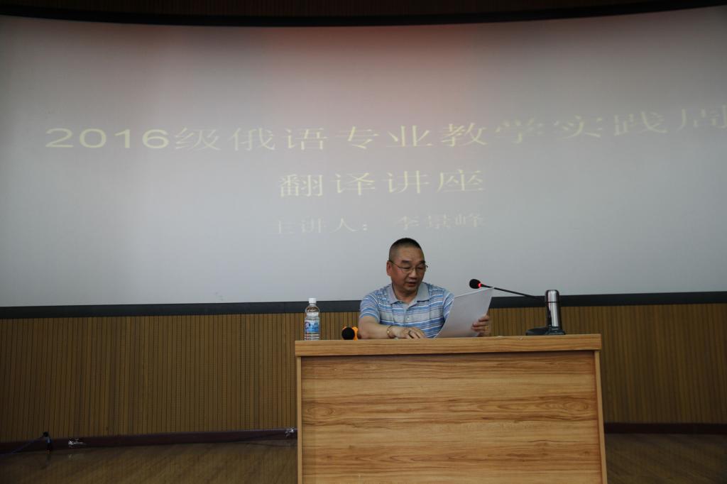 2018年5月21日下午,3344555全新讯网官方网俄语系邀请到黑河市爱辉区润丰翻译行经理兼俄文首席翻译李景峰老师为俄语系2016级学生做讲座,李老师就自己的求学、求职、工作经历、经验、教训、心得体会与同学们进行分享。通过本次讲座,使我系同学了解到很多书本上学不到的翻译实践实战经验,了解到翻译工作的辛苦和快乐,为未来自己的职业生涯开启一扇通往成功的大门。同学们明确了日后如何让培养和锻炼自身的专业素质和能力:培养自己善于分析的头脑和概括能力;培养自己合理思考的能力和估计形势的本能;锻炼自己的反应迅速,能迅速将注意力转移给下一个发言人、新形势和新话题的能力;培养集中注意力;要具有旺盛的求知欲,兴趣广泛;培养自己良好的短期和长期记忆力。