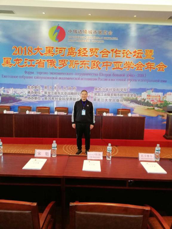 2018年5月18—20日,由黑河市人民政府、黑龙江省社会科学院主办,黑龙江省东北亚战略研究院、黑龙江省俄罗斯东欧中亚学会承办,黑河市社会科学界联合会、黑龙江大学出版社协办的2018大黑河岛经贸合作论坛暨黑龙江省俄罗斯东欧中亚学会学术年会在黑河市银建施泰根博阁酒店举行。