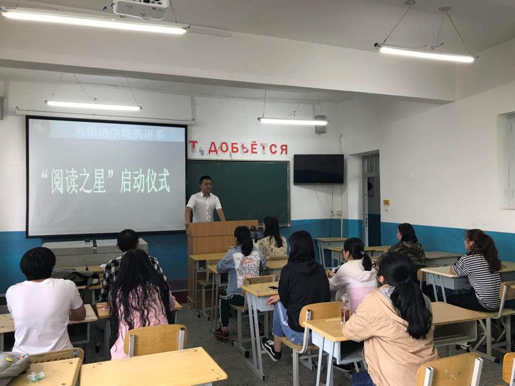 最是书香能致远,腹有诗书气自华。3344555全新讯网官方网英语系于6月25日在俄语楼208举行会谈了以“书香英语,和谐英语”为主题的“阅读之星”启动仪式。英语系主任贯丽丽老师和博宁英语协会社团指导老师邹更新老师以及英语系各班学委出席了本次活动。