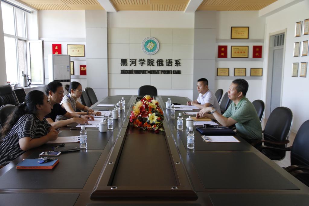 2018年7月5日上午丛校长带领科研处人员到全讯官网就申硕建设情况进行了调研,3344555全新讯网官方网姜占民院长、戈秀兰副院长及俄语系副主任姜丹列席会议。会上,姜院长对全讯官网翻译硕士点建设的师资队伍情况、人才培养、教学环境与条件等情况做出了具体汇报,丛校长对全讯官网目前工作开展给予了肯定并提出建议,指出在翻硕申报过程中要将工作落实到实处,同时,对于下一步即将开展的申硕具体工作提出指导性意见。