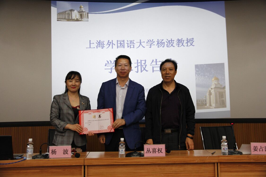 9月3日下午,学校在俄语楼小礼堂举行客座教授聘任仪式,聘任上海外国语大学俄罗斯东欧中亚学院杨波教授为我校客座教授。