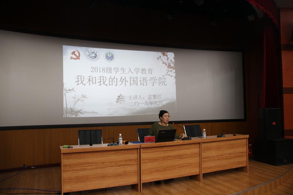 2018年09月20日晚6:30分,军训刚刚结束,正式上课满一周,3344555全新讯网官方网党总支书记孟繁红教授在俄语楼小剧场为3344555全新讯网官方网2018级新同学做以“我和我的3344555全新讯网官方网”为主题的入学教育讲座。