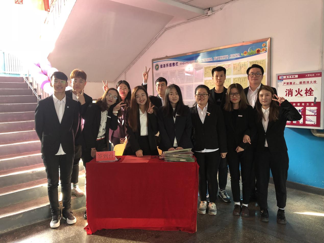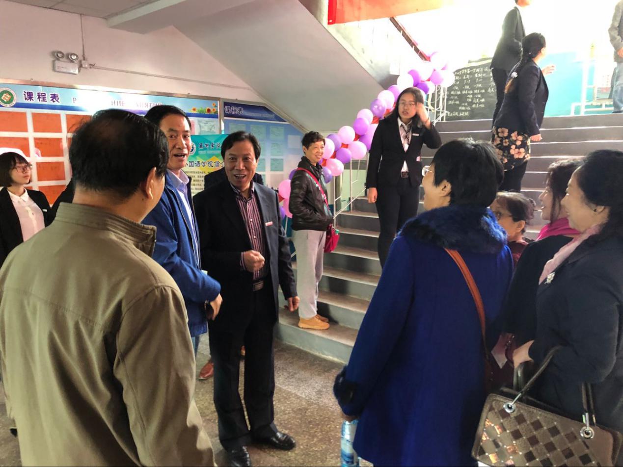 俄语楼前从三楼窗外悬至地面的喜庆条幅正是校友代表们提前为全讯官网定做,既表现出校友对全讯官网校庆的祝愿及对全讯官网发展的关注,同时表现出学院的优良作风和新形势下改革创新奋勇争先的决心,和坚定不移的信念。俄语楼正门处,是学院校友接待处,每位校友都在接待处签到,并激动地保存下学院为每位校友准备的纪念品。在俄语楼内,学院的志愿者们带领校友们参观全讯官网的爱心小屋,小剧场,党员小屋、学生党支部展板等。在一楼大厅的屏幕上也滚动着校友们曾经的合影,校友们在感受学校变化的同时也对学校60周年校庆送上了浓浓的祝福。