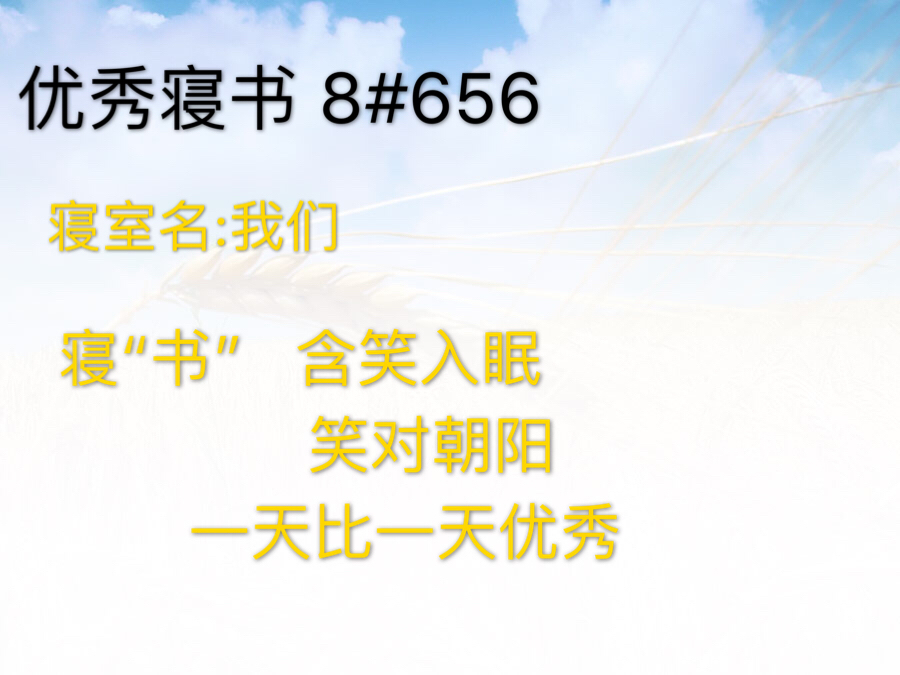 评比期间各寝室卫生状况普遍良好,基本做到了开窗通风,被褥叠放整齐,地面、桌面干净整洁。有的寝室还进行了适当的装饰,把自己的“小家”装扮得十分温馨。各寝室寝书情感丰富,丹青妙笔。此次活动的开展不但提高了同学们整理内务水平,激发了同学们维护宿舍环境的积极性,而且营造了健康向上的宿舍文化氛围,为学习生活提供良好的宿舍环境。