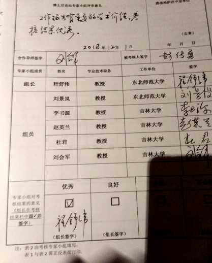 日前,彭传勇博士后的所有出站材料已经吉林大学博士后管理工作办公室审核后,报送中国博士后管委会在吉林省的代管单位——吉林省人力资源与社会保障厅博士后管理工作办公室审批,并获得通过。博士后证书将于近期由吉林省人力资源与社会保障厅博士后管理工作办公室统一印制。