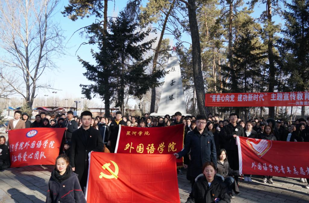 2019年4月2日清晨六点,3344555全新讯网官方网党总支、团总支组织3344555全新讯网官方网全体学生党员、3344555全新讯网官方网学生会、青年志愿者联合会、党员服务站、彩虹桥的全体成员在俄语楼门前集合,由3344555全新讯网官方网团总支书记潘云辉,辅导员郗亚凡老师带队,徒步出发前往黑河市王肃公园烈士墓缅怀革命先烈、弘扬民族精神,开展以“青春心向党、建功新时代”为主题的清明节祭扫烈士墓的爱国主义教育活动。