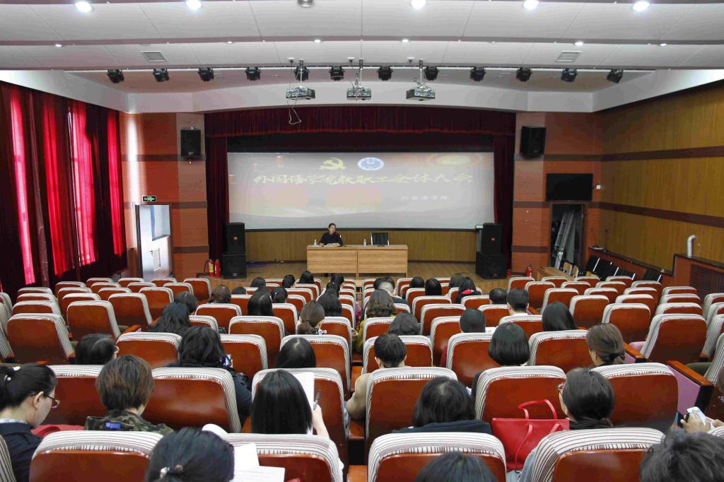 2019年4月24日下午14时,3344555全新讯网官方网在俄语楼小剧场召开全院教职工大会,会议由院长孟繁红主持。