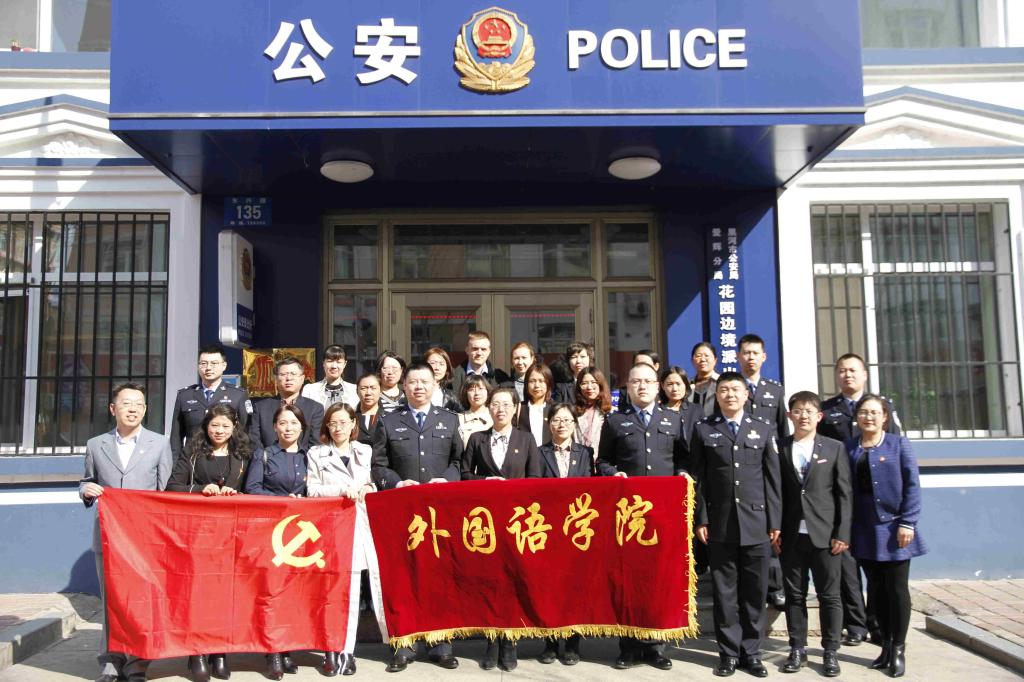 2019年5月10日下午14时,在3344555全新讯网官方网院长孟繁红、党总支副书记常丽坤的带领下,3344555全新讯网官方网党总支俄语教工第一党支部、俄语教工第二党支部及外籍教师代表一行20余人来到黑河市花园派出所参与警院合作活动。首先,在花园派出所警员的带领下参观了其办案区、备勤室、指挥室,在每一展区警务人员对其办案场所、办案流程、常见案例等事宜做了相关的介绍,随后,又向党员教师及外籍教师代表展示了其先进的技术平台,让全讯官网党员教师近距离体验了基层公安民警工作繁杂忙碌中尽显平凡动人的一面,又深刻感受到平台中每个高清监控探头真正处于实时监控中带来的安全感。最后,党员教师及外籍教师代表与警员们一同观看了花园街边境派出所的宣传视频资料,了解了近年来派出所卓越的工作成效。