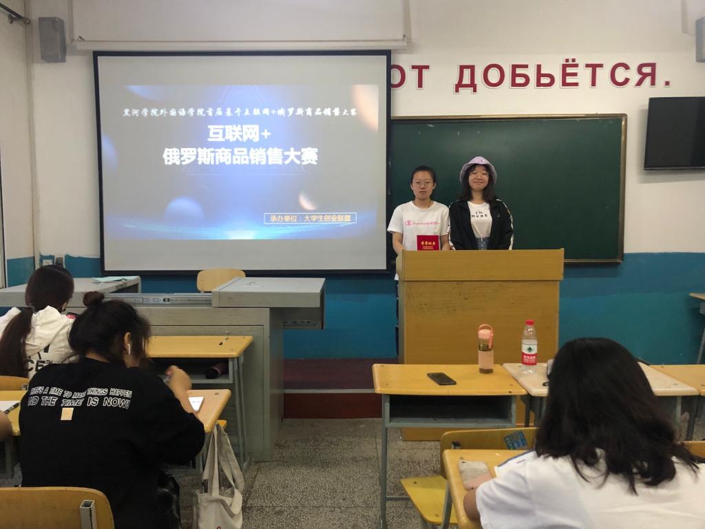 6月11日大学生创业联盟于俄语楼307举办基于“互联网+模式”的俄罗斯商品销售大赛,出席本次比赛的嘉宾有大学生创新创业联盟主席张馨元、彩虹桥爱心团队主席张佳凤,党员工作服务站站长赵英诗。