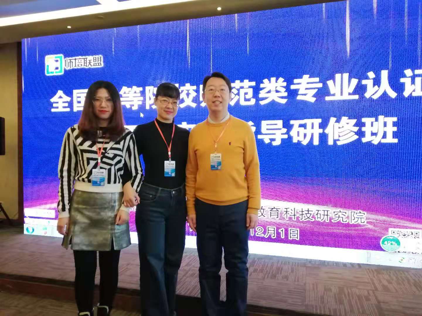 为了更好的推进师范专业认证工作的进程,解决教师在自评报告撰写,人才培养方案制定、课程大纲编写及课程达成度评价等方面的难点问题,2019年11月29日-12月01日期间全讯官网派出王霞、邓指辉、刘迪三位老师参加了在太原市举办的“全国高等院校师范类专业认证系统工作实务指导研修班”。