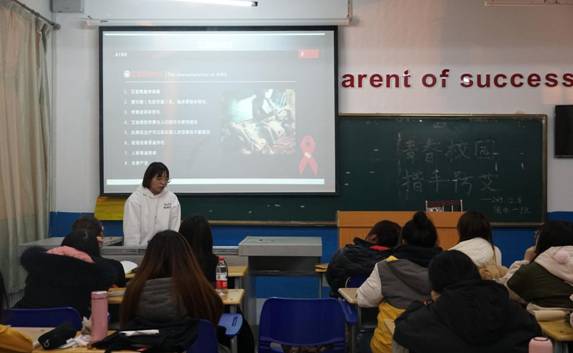 为积极响应世界艾滋病日宣传活动,增强学生社会责任,让更多学生参与到防艾、抗艾宣传中,各班班长在班会上从多个方面向大家介绍了如何预防艾滋病,对艾滋病患者不歧视是作为大学生最应该做到的。最后向大家发出倡议: