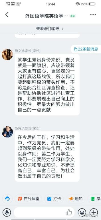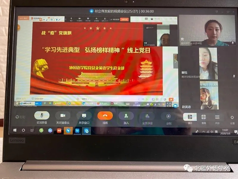 在线上,各党支部积极创新组织形式,集中学习了黑河市交警支队北黑高速公路大队民警王志坚和黑河日报社记者赵天传的先进事迹,并结合学习和当前疫情防控情况做了交流发言。党员们纷纷表示,“非常时期,非常方式,接受并且赞同这样的学习方式。在打赢疫情防控阻击战中,我们要主动作为,当先锋,作表率。带头当好科学防控的践行者,依法防控的执行者,学生的陪伴者,网络正能量的传播者。”