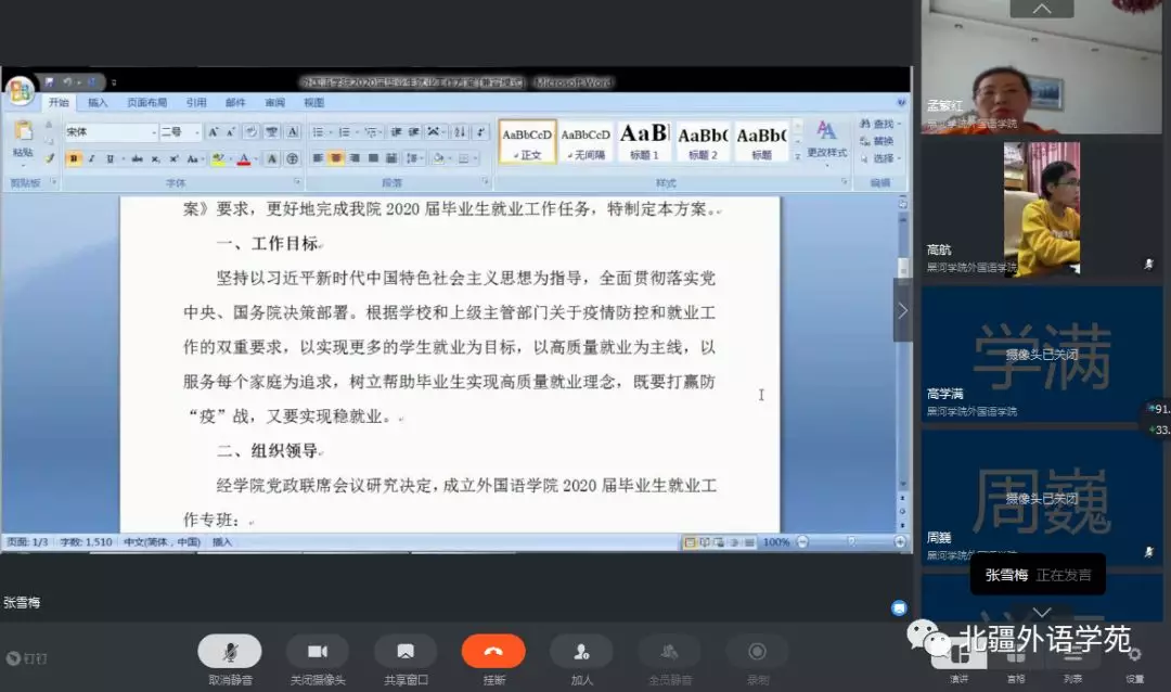 为了更好地贯彻落实党中央、国务院、省委、省政府和省教育厅“稳就业”的决策部署,切实保障毕业生就业权益和身体健康,最大限度降低疫情对毕业生就业工作的影响,3344555全新讯网官方网于3月23日下午召开2020届毕业生就业工作线上会议。学院领导班子成员及全体教职工参加会议,党总支副书记张凯主持会议,院长孟繁红做会议讲话。
