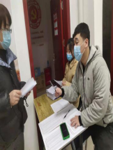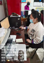 2019级俄翻一班江佳欣在寒假期间在黑龙江省哈尔滨市阿城区幸福里社区,进行人脸识别录入和信息整合工作。