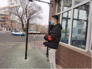 2020级俄本五班赵立昊同学,在齐齐哈尔富裕县富贵名苑担任志愿者,从事负责小区进出扫码工作。