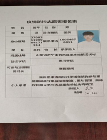 2020级英师一班贺铄淇同学在吉林省长春市弓棚镇富家屯村委会做志愿者工作,主要工作内容为负责道路的卡点,车辆进出,实名登记。同时配合村委会进行核酸检测工作。
