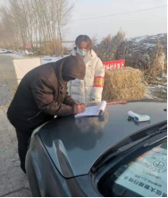 2020级商务英语二班宋淼同学在黑龙江省齐齐哈尔市拜泉县参加志愿者活动。主要工作内容卡口执勤,对出入小区居民进行扫码、登记、测量体温,协助社区人员工作。