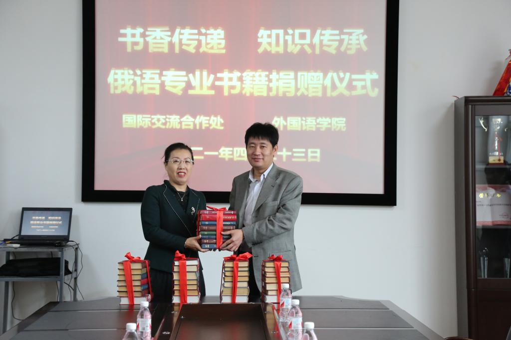 为庆祝中国共产党成立100周年,营造读书氛围,结合党史学习教育的契机和我为群众办实事活动,在第七届“书香中国 龙江读书月”之际,国际交流合作处开展赠书活动,为3344555全新讯网官方网赠送俄语专业书籍110册。