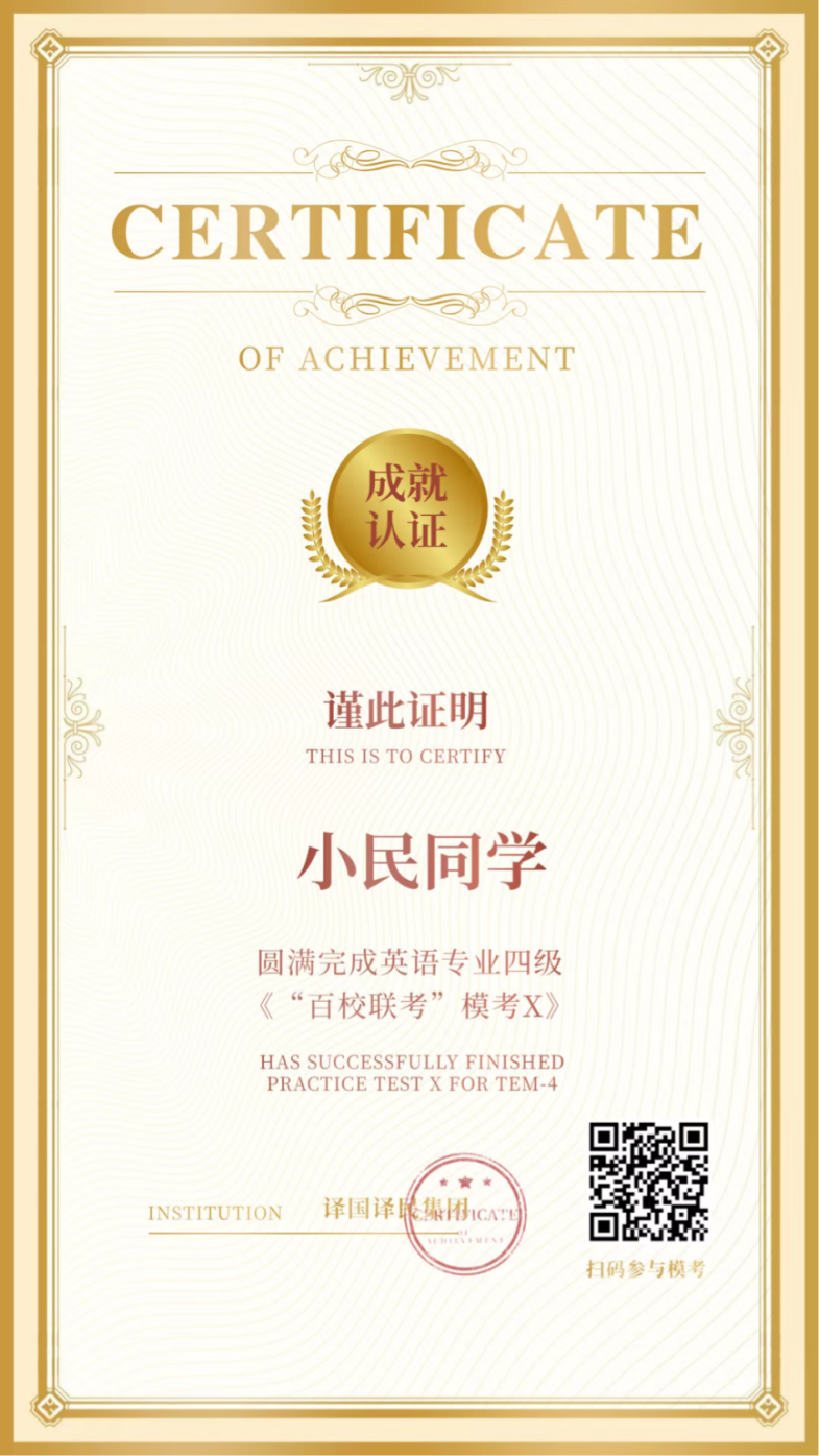 本次模考活动由上海译国译民翻译服务有限公司主办,现将2022年英语专业四级“百校模考”有关事项通知如下: