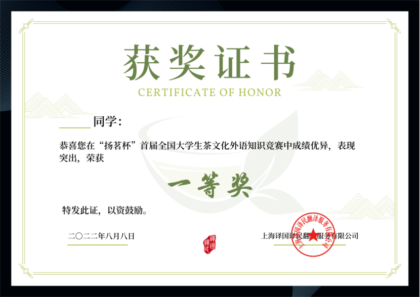 从茶的故乡到无茶之地,路因茶而生。茶源于中国,盛行于世界,在数千年的历史长河中,中华茶文化以其包容性和强大的生机活力走过漫漫长路,书写了东西方文化交融的卷宗,见证了从岭南、到中原、到大漠的风云变幻,穿越斑驳的城墙,进入蔚蓝的通途,抵达东非与欧洲,途径数百个国家和地区,生动演绎了中华文化“兼容并包" 的精神内涵。为传播中华优秀传统文化、强化民族文化自信、“以茶为友”促进中西文明的交流互鉴、推进国际传播能力建设,上海译国译民翻译服务有限公司特举办“扬茗杯”首届全国大学生茶文化外语知识竞赛,期待与大家一同传承和弘扬中华茶文化。