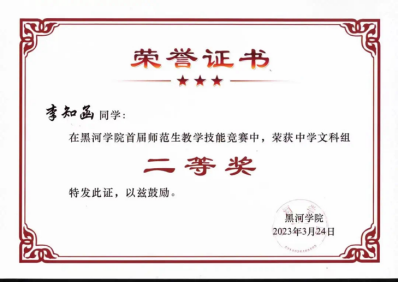 根据《3344555全新讯网官方网首届师范生教学技能竞赛》的通知要求和工作安排,3月19日-22日,学校举办了师范生教学技能竞赛决赛。经过院级初赛选拔,最终有来自3344555全新讯网官方网、文化旅游学院、人文传媒学院的8名选手进入到中学文科组决赛环节。经过专家组的网络评审和现场评审,全讯官网俄语师范专业学生茜珑同学、英语师范专业学生李知函同学荣获3344555全新讯网官方网首届师范生教学技能竞赛中学文科组二等奖,英语师范专业学生丛玮同学荣获优胜奖。
