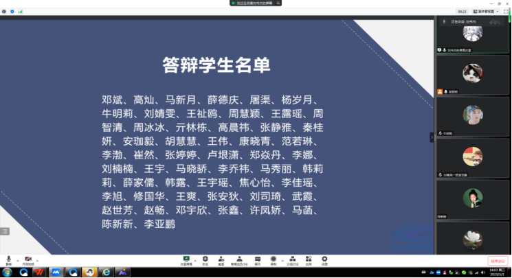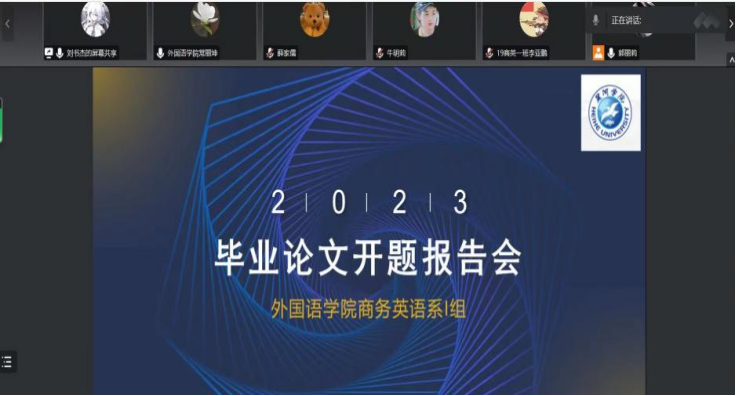 为全面贯彻党的教育方针,围绕立德树人根本任务,强化过程指导,2023年3月1日下午,商务英语专业2019级本科生毕业论文开题报告会在腾讯会议平台举行。6名教师担任评委,2019级106名毕业生参与开题答辩汇报,分两组同时进行,历时近五个小时顺利完成答辩论证工作。