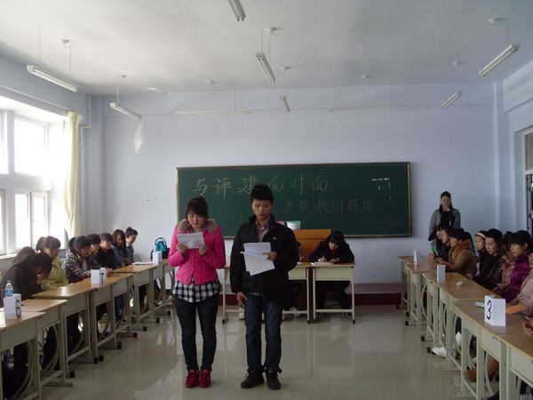2012年3月12—16日,俄语系团总支在11级学生中举办了“我与评估面对面,共铸学校新辉煌”的评建知识竞赛。本次竞赛设有预赛和决赛,共有16支代表队参加预赛,经过激烈角逐共有6支代表队进入决赛,最后11级俄本1班凭借出色的表现获得本次竞赛的第一名。