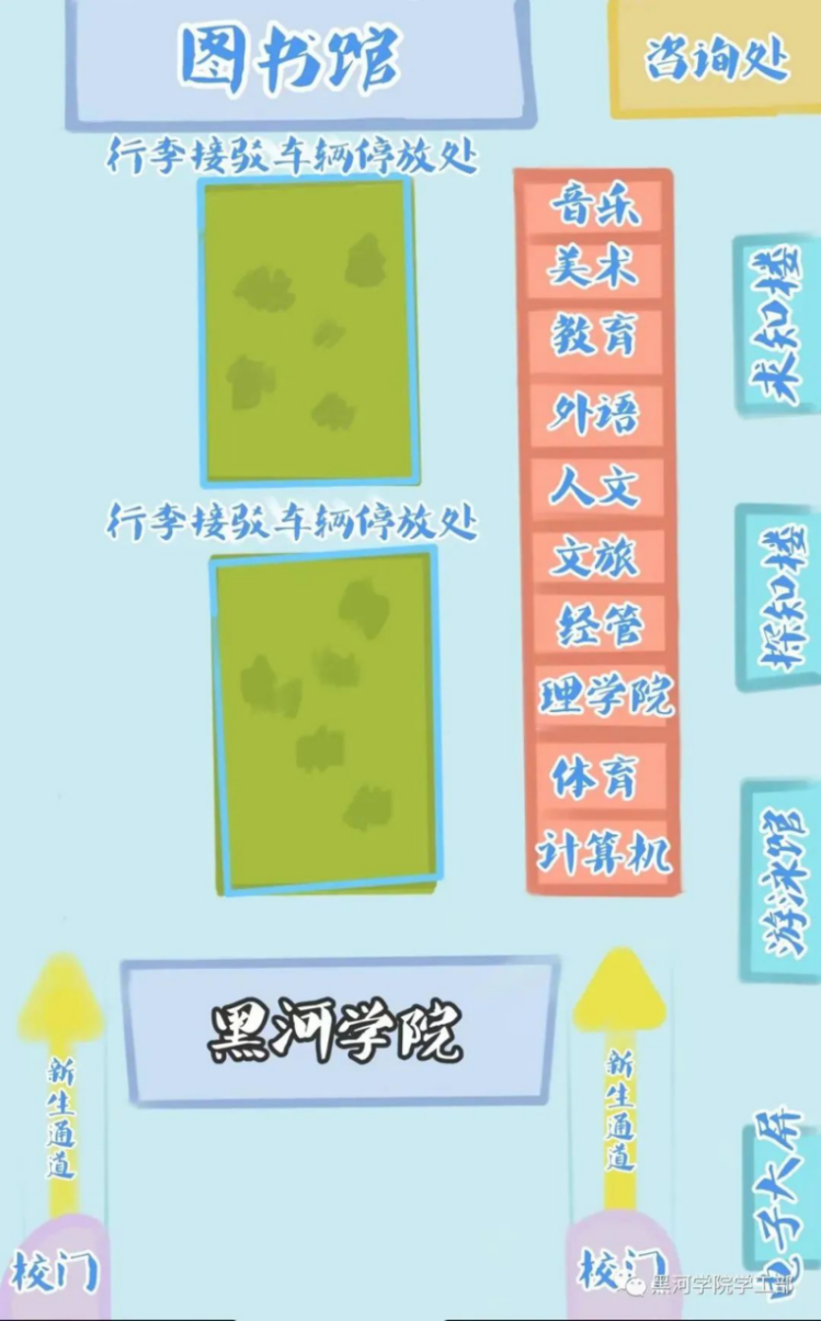 此图为9月2日—3日2023级新同学同学报道示意图。