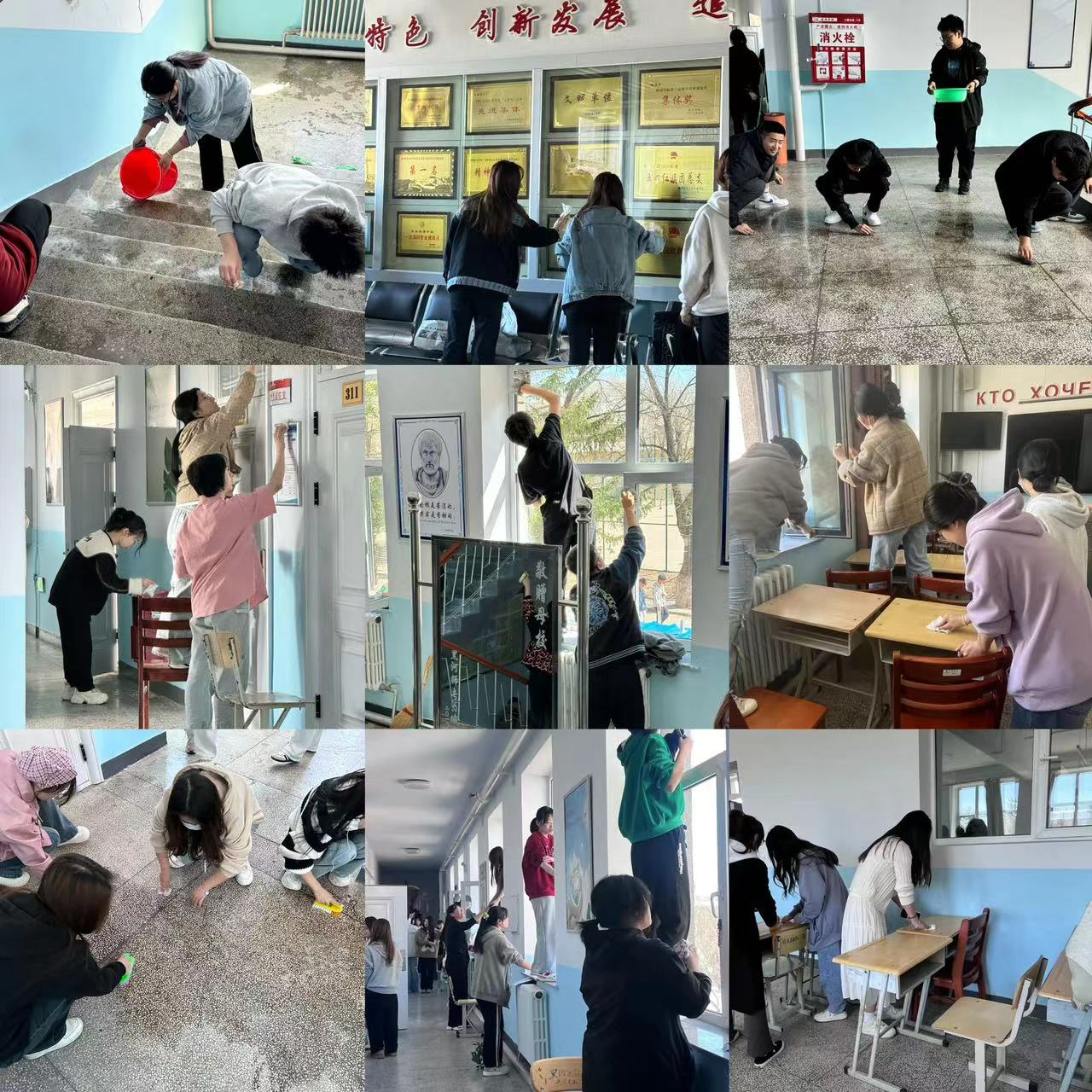 学院动态丨3344555全新讯网官方网开展以"劳"树品德,以"动”促成长外语楼清扫活动