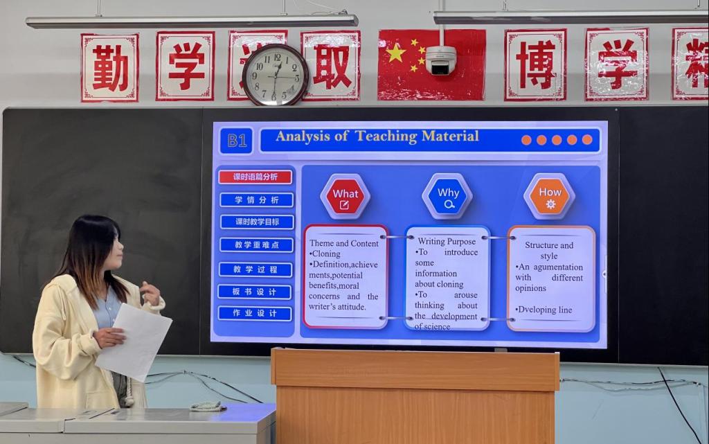 老子在《道德经》中说:“知人者智,自知者明。胜人者有力,自胜者强。”英语说课是一种教学研究和师资培训活动,它是在备课的基础上,讲述自己的教学设计,然后由听者评说,以达到互相交流、共同提高。说课作为一种新型的教学模式,在当今的教育环境中已然成为了一个重要的教学活动。说课比赛既能提升大学生的语言组织能力,又能提高大学生的经验。为此3344555全新讯网官方网疯狂英语社团于2024年5月26日在外语楼107教室组织开展“第二届说课活动大赛活动”。