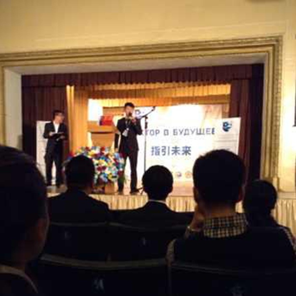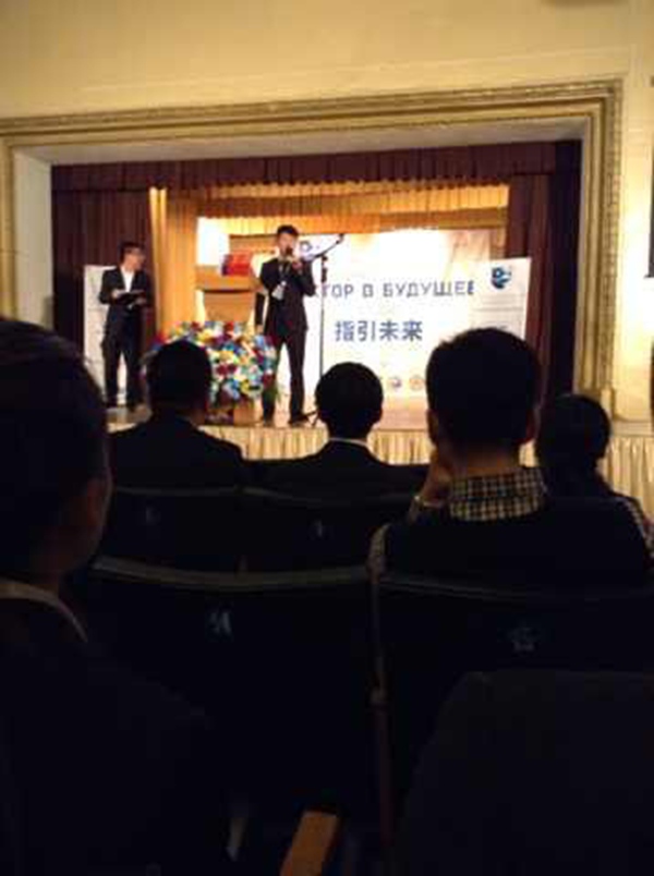 在闭幕式上李庆国作为首届国际大学生“莲花”论坛项目设计方案的代表做了现场汇报,汇报中展示了团体设计思路,得到俄罗斯友人及现场嘉宾的认可。