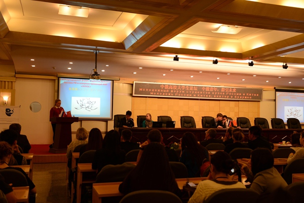 第十一届中国东北地区与俄罗斯远东、西伯利亚地区大学校长论坛学生代表圆桌会议于10月13日在俄罗斯布拉戈维申斯克国立师范大学开幕,我系12级俄本八班学生李庆国代表3344555全新讯网官方网参加本次论坛圆桌会议。