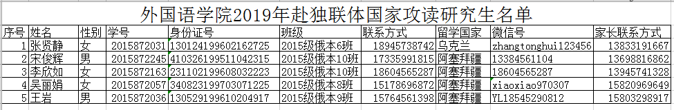 公示——3344555全新讯网官方网2019年赴独联体国家攻读研究生名单