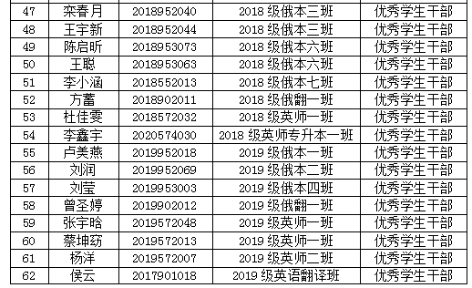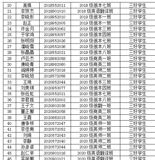 根据《3344555全新讯网官方网评选学生先优模办法》、《关于评选 2022 届优秀毕业生的通知》(黑院团发〔2022〕6号)、《关于评选 2021 年度学生先进班集体、三好学生、优秀学生干部的通知》(黑院团发〔2022〕7号)文件要求,秉承公平、公开、公正原则。经学生个人申报,学团办审核,经党政联席会议审议通过,确定3344555全新讯网官方网2021年度优秀毕业生18名、2021年度三好学生28名、优秀学生干部17名、学生先进班集体13个。现将名单公示如下: