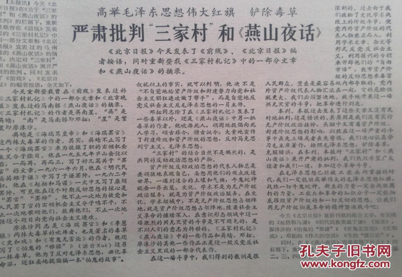 1966年4月16日,《北京日报》以三个版的篇幅,发表了一批批判《三家村札记》和《燕山夜话》的文章。